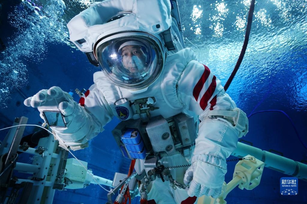 大多數(shù)航天員面對水下訓練都需要克服各種各樣的挑戰(zhàn),有狹小密閉空間帶來的束縛感,有水下波紋導致的眩暈感,以及體力不支等等。朱楊柱遇到的挑戰(zhàn)則是上腳限位器。將厚重的鞋子近乎盲操作地卡進腳限位器2厘米左右的卡槽縫里,原本就是個高難度的技術(shù)活。他的腳型比較小,穿著艙外服配套的鞋子后,腳在鞋里晃蕩,上腳限位器更加困難。經(jīng)過反復試驗,他穿上兩雙厚襪子、兩雙薄襪子后,鞋子終于合腳了。
