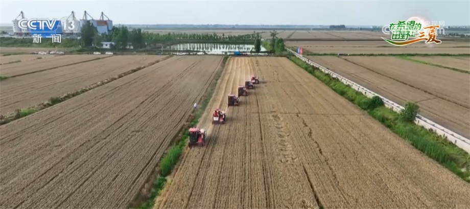 當(dāng)然,確保顆粒歸倉,除了要減損,更要及時(shí)搶收。今年麥?zhǔn)掌陂g,當(dāng)?shù)赜錾狭撕币姷慕涤晏鞖?,而?日開始預(yù)計(jì)還會(huì)有一輪降雨,所以大比武的同時(shí),搶收也在抓緊進(jìn)行,大家要抓緊這幾天的窗口期,進(jìn)行24小時(shí)的搶收作業(yè)。農(nóng)業(yè)專家告訴我,在當(dāng)?shù)?,降雨?duì)于麥?zhǔn)盏挠绊懹袃牲c(diǎn),一個(gè)是土地變得潮濕松軟,大型機(jī)械下地難。針對(duì)這點(diǎn),當(dāng)?shù)匾膊扇×舜胧?,在一些土地還沒有干透的麥田里,我們看到有不少履帶式的收割機(jī),它們雖然體型稍小,但履帶可以避免陷入土地,還有一些無人駕駛的智慧農(nóng)機(jī),可以解決搶收時(shí)的人手問題。這些都是當(dāng)?shù)剞r(nóng)業(yè)部門按照農(nóng)戶需求及時(shí)幫助調(diào)配的。目前,阜南全縣投入聯(lián)合收割機(jī)4300多臺(tái),組建了搶收服務(wù)隊(duì)76個(gè)、農(nóng)機(jī)維修服務(wù)隊(duì)28個(gè),將爭取在5天內(nèi)完成全部麥?zhǔn)铡?/p>