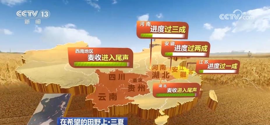 農(nóng)業(yè)農(nóng)村部小麥機(jī)收調(diào)度顯示,目前,全國(guó)已收冬小麥面積7500多萬(wàn)畝,麥?zhǔn)者M(jìn)度過兩成。其中,西南地區(qū)、湖北麥?zhǔn)者M(jìn)入尾聲;河南進(jìn)度過三成、安徽進(jìn)度過兩成、江蘇進(jìn)度過一成。