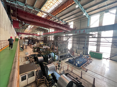 5月30日,本鋼三冷酸洗軋機(jī)聯(lián)合機(jī)組里一片繁忙。一個個幾十噸重的鋼卷整齊有序地在傳送帶上穿梭著,從上料、拆卷、拉矯、酸洗到成品卸卷……軋機(jī)段最大速度可以達(dá)到1500米/分鐘。