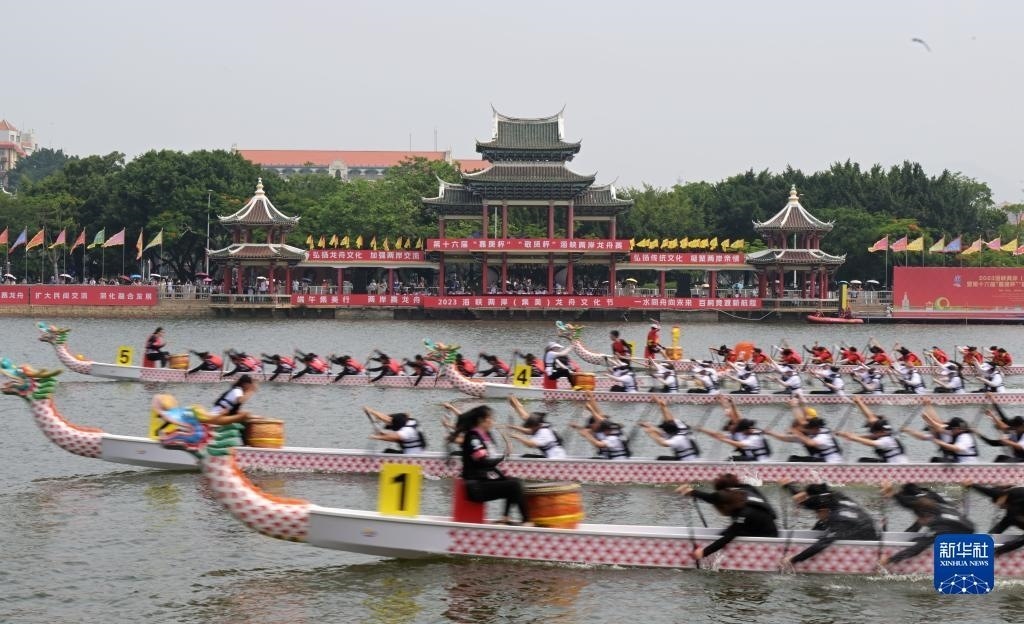 當日,2023海峽兩岸(集美)龍舟文化節(jié)暨第十六屆“嘉庚杯”“敬賢杯”海峽兩岸龍舟賽在廈門集美龍舟池啟幕。來自海峽兩岸的47支龍舟隊伍在競賽中享受龍舟競渡的活力、中華傳統文化的魅力,共有約500名臺胞參與賽事。