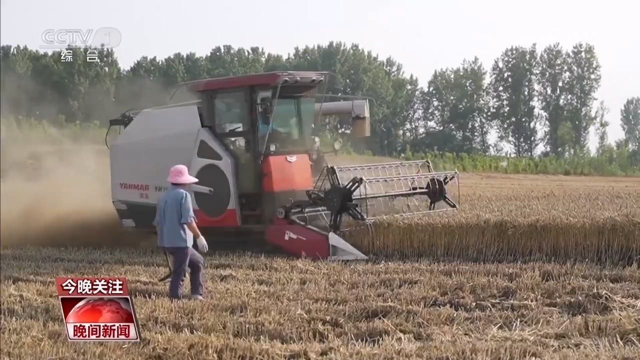 河南安陽滑縣留固鎮(zhèn)程新莊村 農(nóng)機手 周勇:早上從7點開始干,干到現(xiàn)在,(收)了一百四五十畝,兩個師傅輪流,人歇機器不歇,抓緊時間,把老百姓的小麥搶收到家。