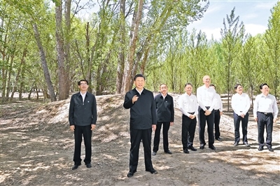 5日至6日,習(xí)近平在內(nèi)蒙古自治區(qū)黨委書(shū)記孫紹騁、自治區(qū)人民政府主席王莉霞陪同下,深入巴彥淖爾市的自然保護(hù)區(qū)、現(xiàn)代農(nóng)業(yè)示范園區(qū)、林場(chǎng)、水利部門等調(diào)研。