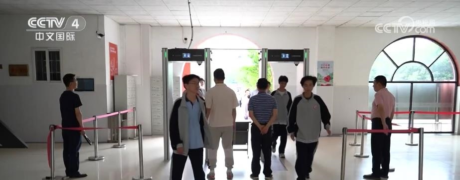 每個安檢門上方有攝像頭,身份識別系統(tǒng)不僅能識別考生身份信息,還將對考生入場全過程進行監(jiān)督并將情況傳輸至考試指揮中心。