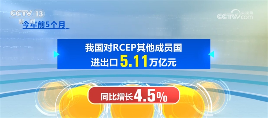 隨著區(qū)域經(jīng)濟交往不斷互聯(lián)互通,我國對《區(qū)域全面經(jīng)濟伙伴關(guān)系協(xié)定》(RCEP)其他成員進出口穩(wěn)定增長,今年前5個月,我國對RCEP其他成員國進出口5.11萬億元,同比增長4.5%,RCEP占我國外貿(mào)比重超過30%。