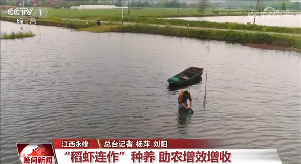 江西九江市永修縣三角鄉(xiāng)稻蝦種養(yǎng)戶 柯美洪:現(xiàn)在搞稻蝦連作,相比以前成本節(jié)約了不少,大米的品質(zhì)也更好了,每畝額外增收兩三千元。