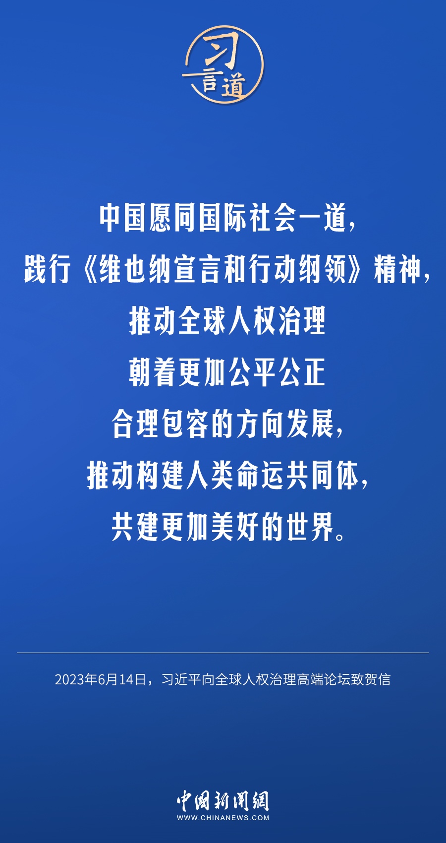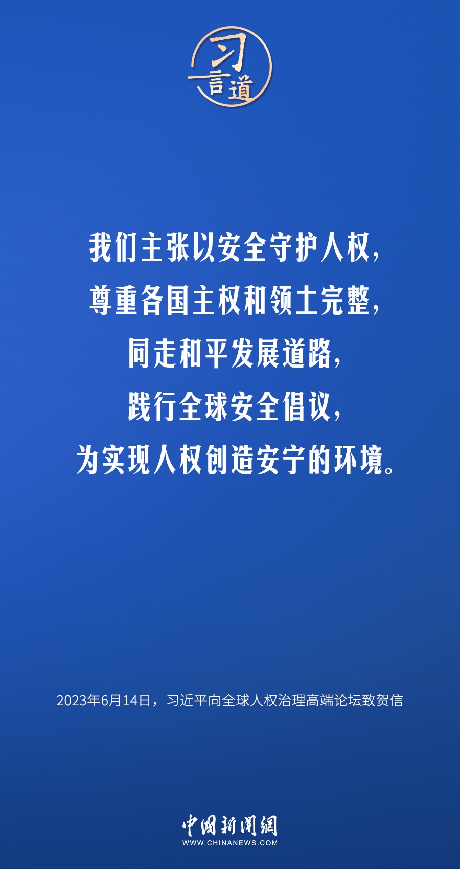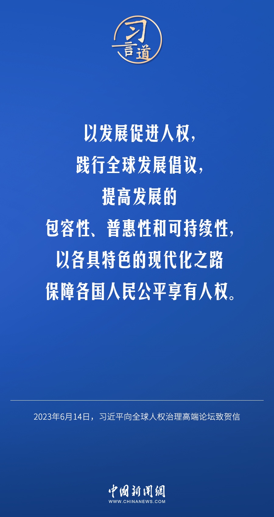 6月14日,國家主席習(xí)近平向全球人權(quán)治理高端論壇致賀信。他指出——