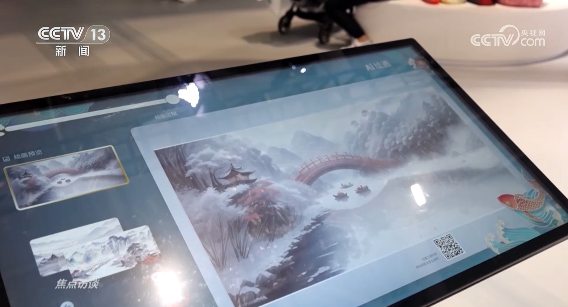 體驗(yàn)一把AI繪畫是很多觀展小朋友的愿望,從一名繪畫小白變成國(guó)畫大師需要多久?文博會(huì)給我們的答案是5秒。深圳某科技公司剛剛研發(fā)出的AI作畫機(jī),根據(jù)用戶畫出的圖案不斷進(jìn)行造型演變,展開豐富聯(lián)想最終創(chuàng)作合成出國(guó)風(fēng)山水畫作。