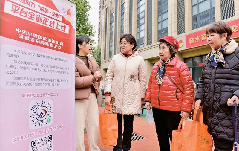 2023年2月17日,安徽省合肥市蜀山區(qū)井崗鎮(zhèn)紀委和衛(wèi)樓社區(qū)工作人員在引導居民關(guān)注了解小微權(quán)力“監(jiān)督一點通”平臺相關(guān)知識。 中新社發(fā) 葛宜年/攝