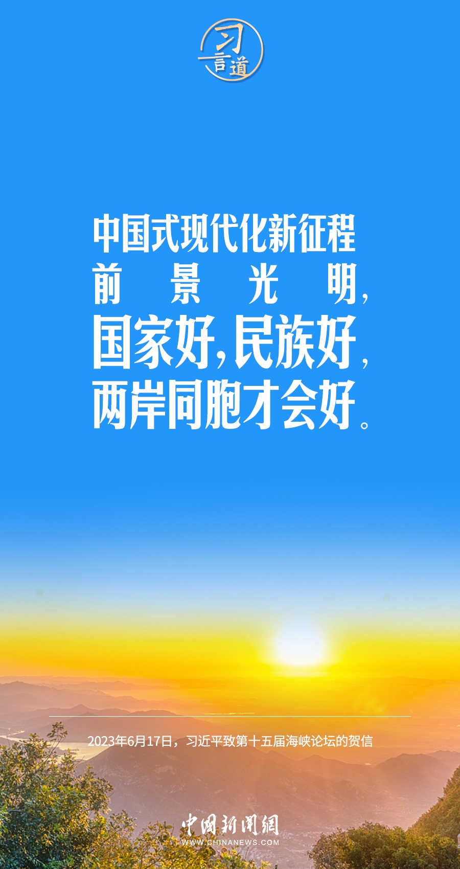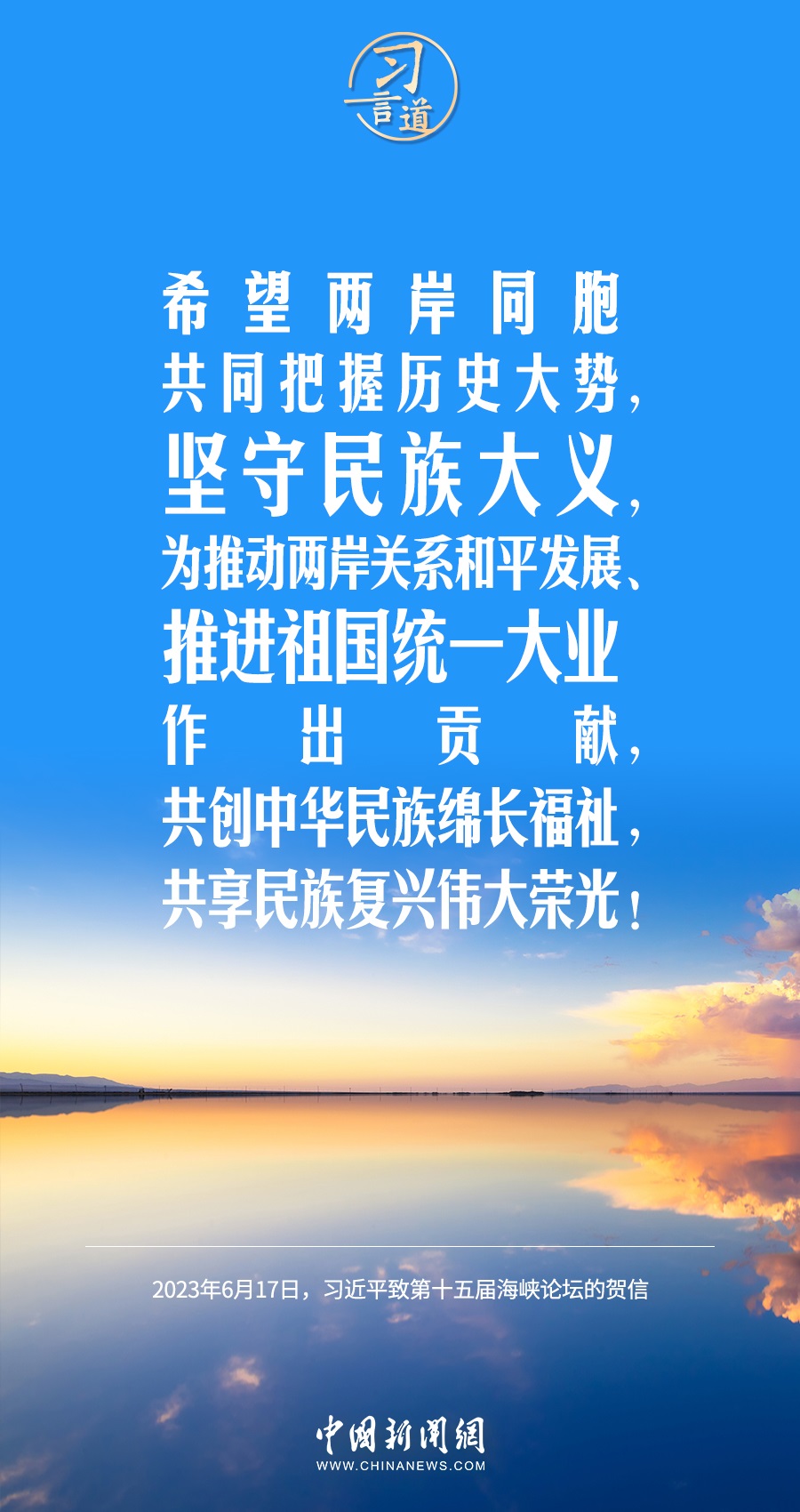 6月17日,中共中央總書(shū)記、國(guó)家主席習(xí)近平向第十五屆海峽論壇致賀信。習(xí)近平強(qiáng)調(diào)——