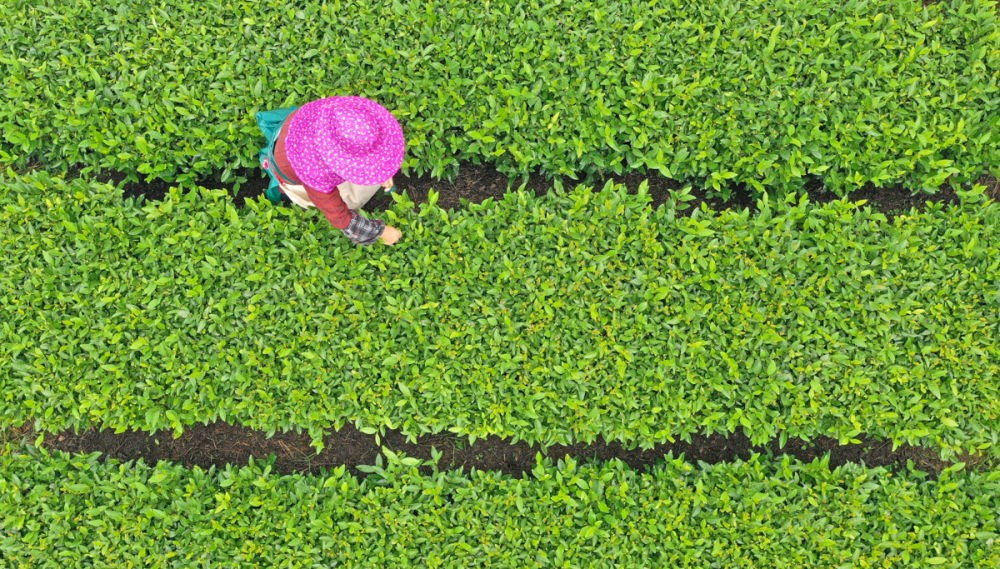 ↑2023年9月6日,浙江省臺(tái)州市仙居縣上張鄉(xiāng)方山村,茶農(nóng)在采摘秋茶。CICPHOTO/王華斌 攝