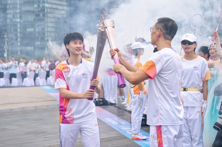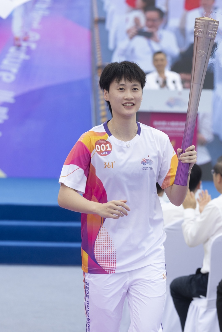 第一棒火炬手是2020年東京奧運(yùn)會(huì)羽毛球女單冠軍陳雨菲。