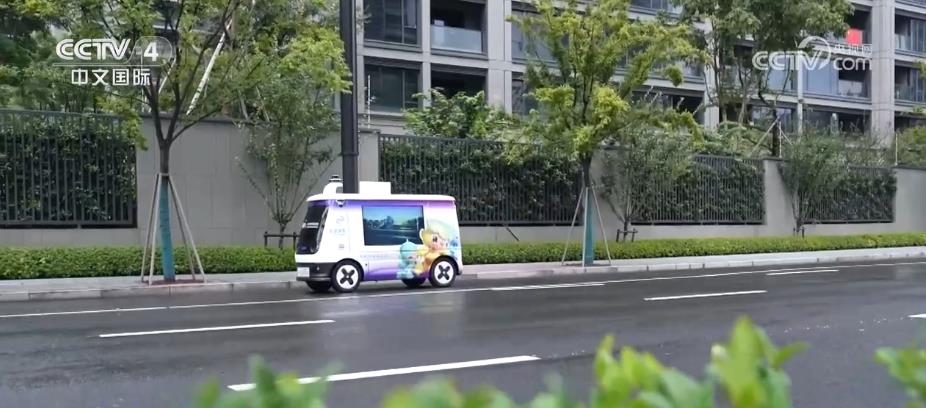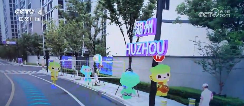 總臺記者 黃珊:亞運村里的AR智能巴士在全自動巡航狀態(tài)下,能為乘客提供接駁、講解的服務。正前方的特殊窗戶結合車載AR功能,透過它能夠看到車外的實時影像,結合虛擬場景,虛實結合,非常奇妙。