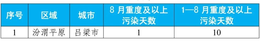 8月和1—8月重點區(qū)域出現(xiàn)重度及以上污染天的城市及具體天數(shù)詳見附表3。