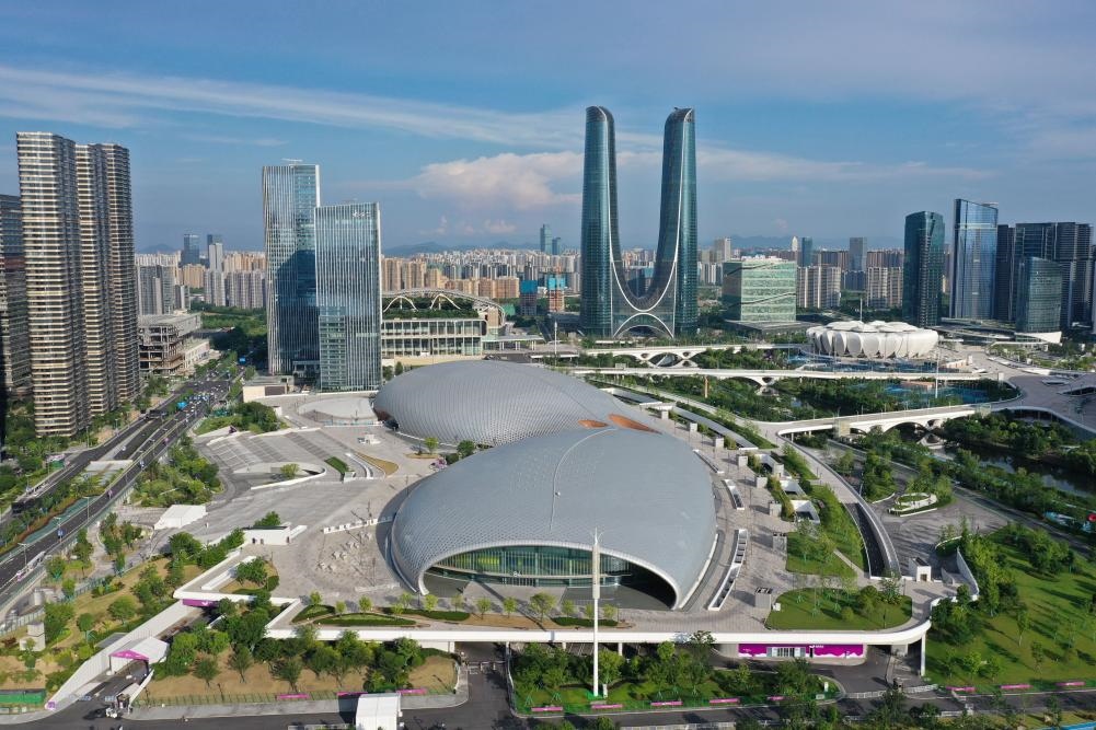 這是2023年6月28日拍攝的杭州奧體中心游泳館、體育館(無人機照片)。新華社記者 黃宗治 攝