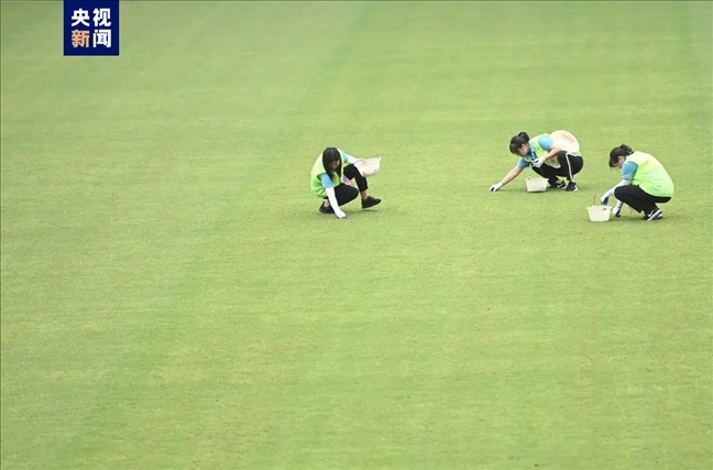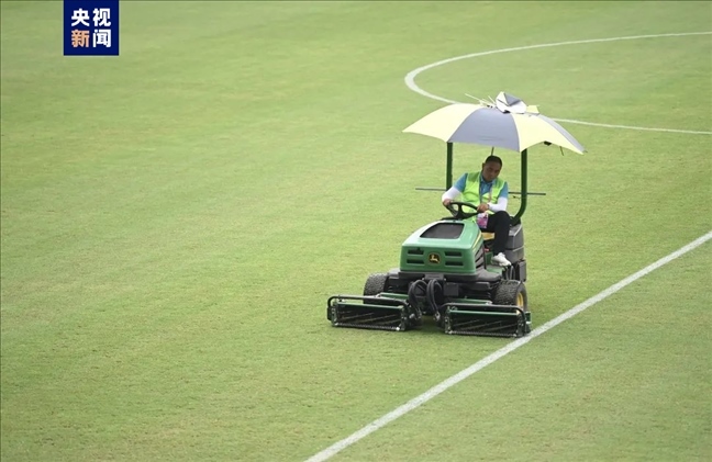 9月19日晚場(chǎng)比賽結(jié)束,運(yùn)動(dòng)員退場(chǎng)后,何東奇和草皮維護(hù)組的伙伴們立刻進(jìn)場(chǎng),開(kāi)始對(duì)整個(gè)場(chǎng)地的草坪進(jìn)行巡查修整。9個(gè)人一直工作到夜里12時(shí)多,完成了賽后草坪維護(hù)保養(yǎng)工作,“我回到駐地洗完澡休息已經(jīng)1:30了?!标悜c玉說(shuō)道。