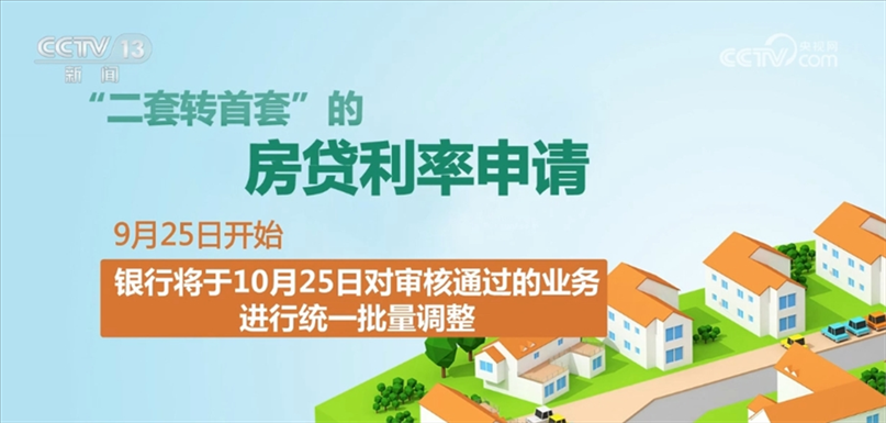央視網(wǎng)消息:根據(jù)中國(guó)人民銀行、國(guó)家金融監(jiān)督管理總局的通知,從今天(9月25日)起,各家銀行將對(duì)存量房貸,也就是正處于還款期的房貸利率進(jìn)行調(diào)整。其中,對(duì)于存量首套房貸的利率,銀行將主動(dòng)進(jìn)行批量調(diào)整,不需要客戶做任何操作。?