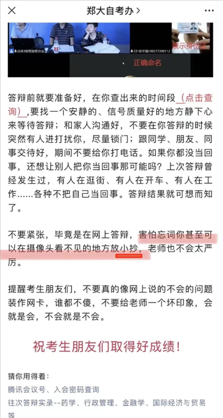 ·鄭州大湖南一生答辯時(shí)“放小抄”?官方回應(yīng):表述用詞不當(dāng),不能用‘小抄’。本意是指答辯參考材料,跟作弊是兩碼事,今后會(huì)做修改。
