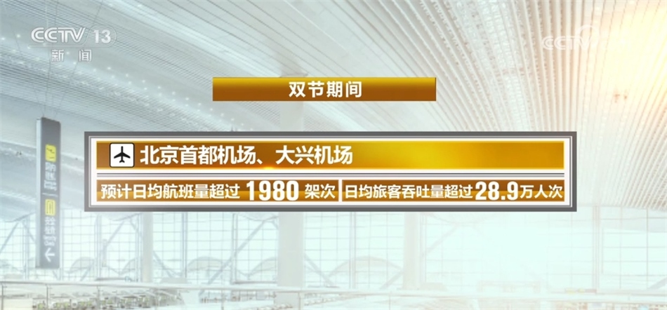 ?????? 民航方面,“雙節(jié)”期間,北京首都機場、大興機場預計日均航班量超過1980架次,日均旅客吞吐量超過28.9萬人次。