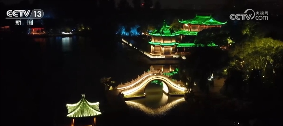總臺記者 丁然:我現(xiàn)在所在的位置就是江蘇揚(yáng)州的瘦西湖景區(qū),首先我們可以看到的便是小金山旁一處廳堂,名為月觀。每當(dāng)皓月東升,在此憑欄而立,天上水中的兩個月亮交相輝映。