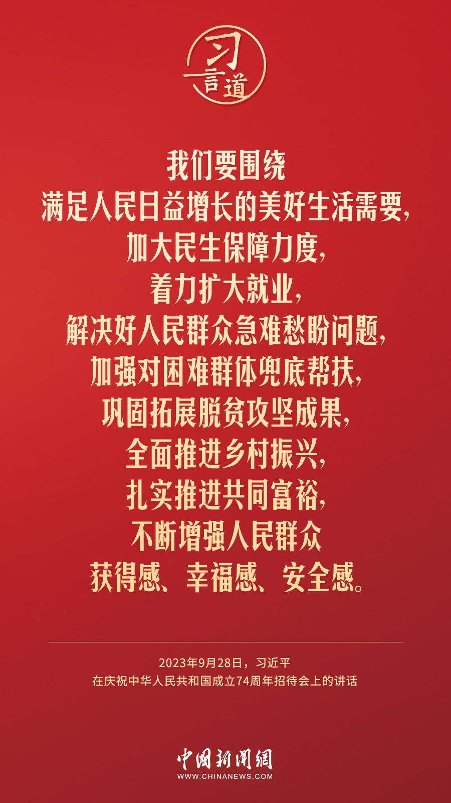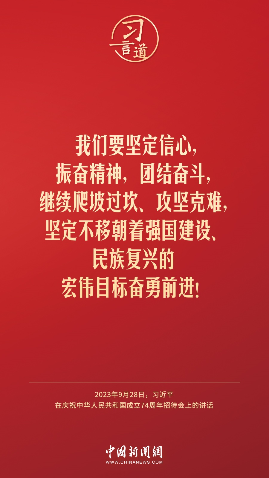 慶祝中華人民共和國成立74周年招待會28日晚在人民大會堂舉行。中共中央總書記、國家主席、中央軍委主席習近平出席招待會并發(fā)表重要講話。他強調(diào)——