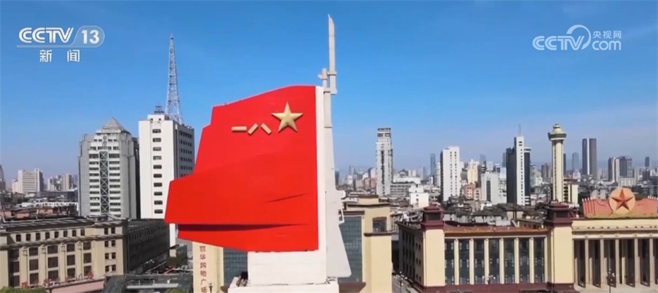 這里是江西省南昌市中心的八一廣場,八一南昌起義紀念塔巍然矗立,塔頂有一面用棗紅色磨光花崗石做成的八一軍旗,形象地表現(xiàn)南昌起義開始中國共產(chǎn)黨獨立領(lǐng)導武裝斗爭、人民軍隊從此光榮誕生這一偉大主題?!澳喜穷^的槍聲”如“劃破夜空的一道閃電”,從此軍旗獵獵向前進。