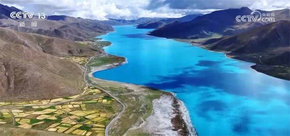 ??????西藏山南:羊卓雍錯碧藍璀璨 湖光山色恬靜柔和