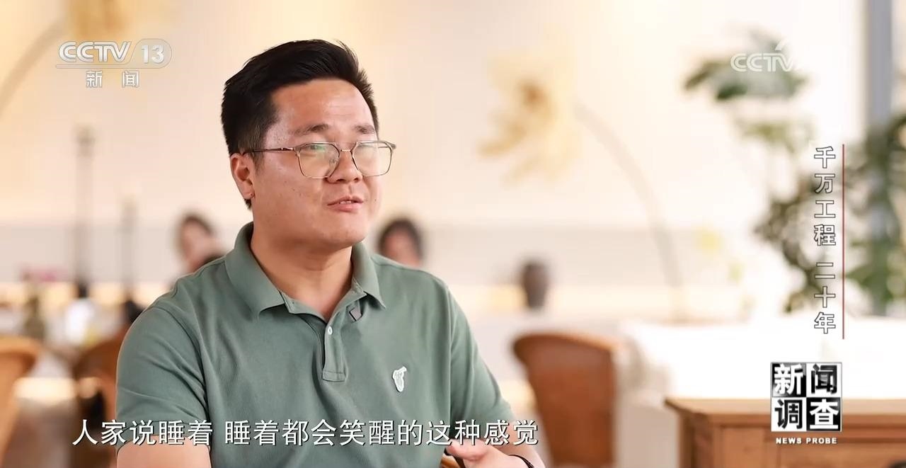浙江安吉靈峰街道大竹園村返鄉(xiāng)創(chuàng)業(yè)青年 沈金龍:真正20多年,不管是經(jīng)濟(jì)還是質(zhì)感全部在提升,我們以前從來沒想過我們老百姓能住到像我們農(nóng)房試點這種房子,就是庭院、小橋流水這種房子,哪會想到,現(xiàn)在老百姓住在里面。而且不光是自己住,他還經(jīng)營起來了,還能靠著這個房子、這個環(huán)境變現(xiàn)。甚至我們現(xiàn)在都想想,人家說睡著、睡著都會笑醒的這種感覺,真是太美了。