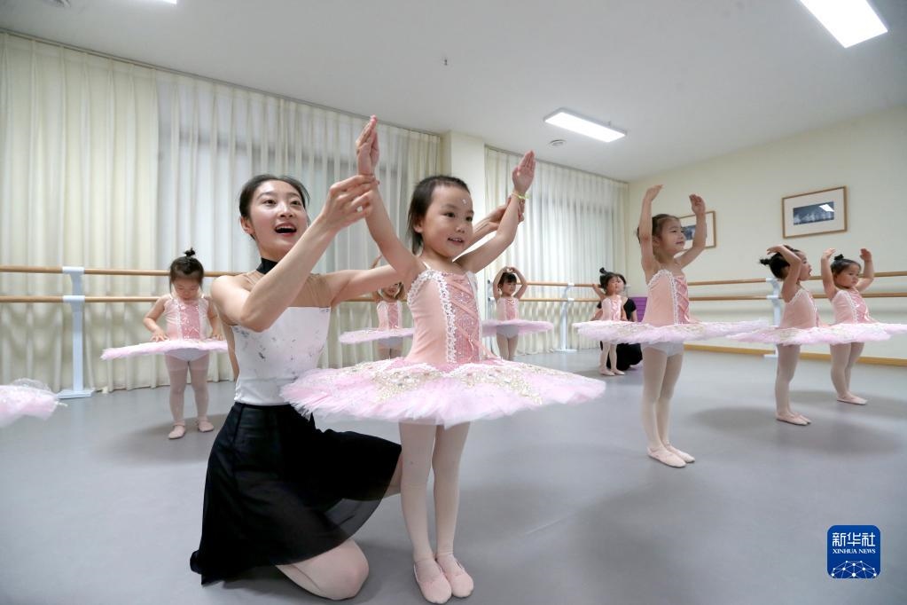 7月7日,在四川省眉山市東坡區(qū),兒童在少年宮公益托管班學習舞蹈。