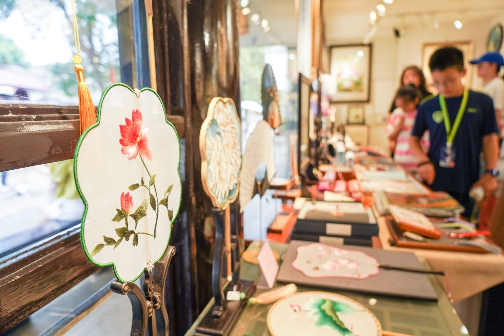 7月6日,游客在平江路一家蘇繡店內(nèi)選購(gòu)紀(jì)念品。