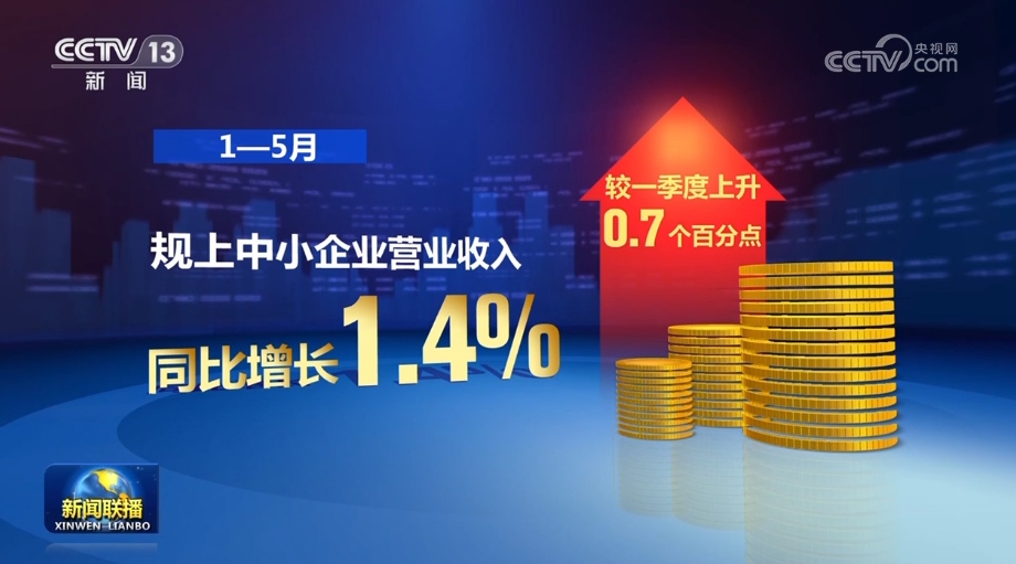 1—5月,規(guī)上中小企業(yè)營業(yè)收入同比增長1.4%,較一季度上升0.7個百分點。1—5月,“小巨人”、專精特新企業(yè)營收利潤率分別為9.9%、7.1%,比規(guī)上工業(yè)企業(yè)分別高4.7個、1.9個百分點。