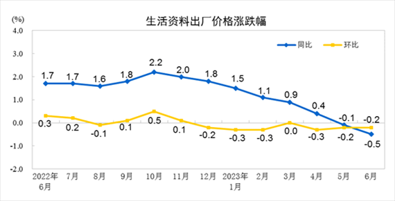 央視網(wǎng)消息:據(jù)國家統(tǒng)計(jì)局網(wǎng)站消息,2023年6月份,全國工業(yè)生產(chǎn)者出廠價(jià)格同比下降5.4%,環(huán)比下降0.8%;工業(yè)生產(chǎn)者購進(jìn)價(jià)格同比下降6.5%,環(huán)比下降1.1%。上半年,工業(yè)生產(chǎn)者出廠價(jià)格比上年同期下降3.1%,工業(yè)生產(chǎn)者購進(jìn)價(jià)格下降3.0%。