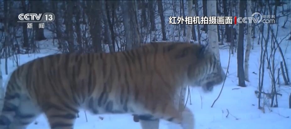 央視網(wǎng)消息:近日,工作人員在東北紅豆杉國家級(jí)自然保護(hù)區(qū)核心區(qū)、東北虎豹國家公園穆棱園區(qū)內(nèi)布設(shè)的野外紅外線相機(jī)中,再次發(fā)現(xiàn)了野生東北虎“完達(dá)山一號(hào)”今年4月份在該區(qū)域活動(dòng)的清晰影像。