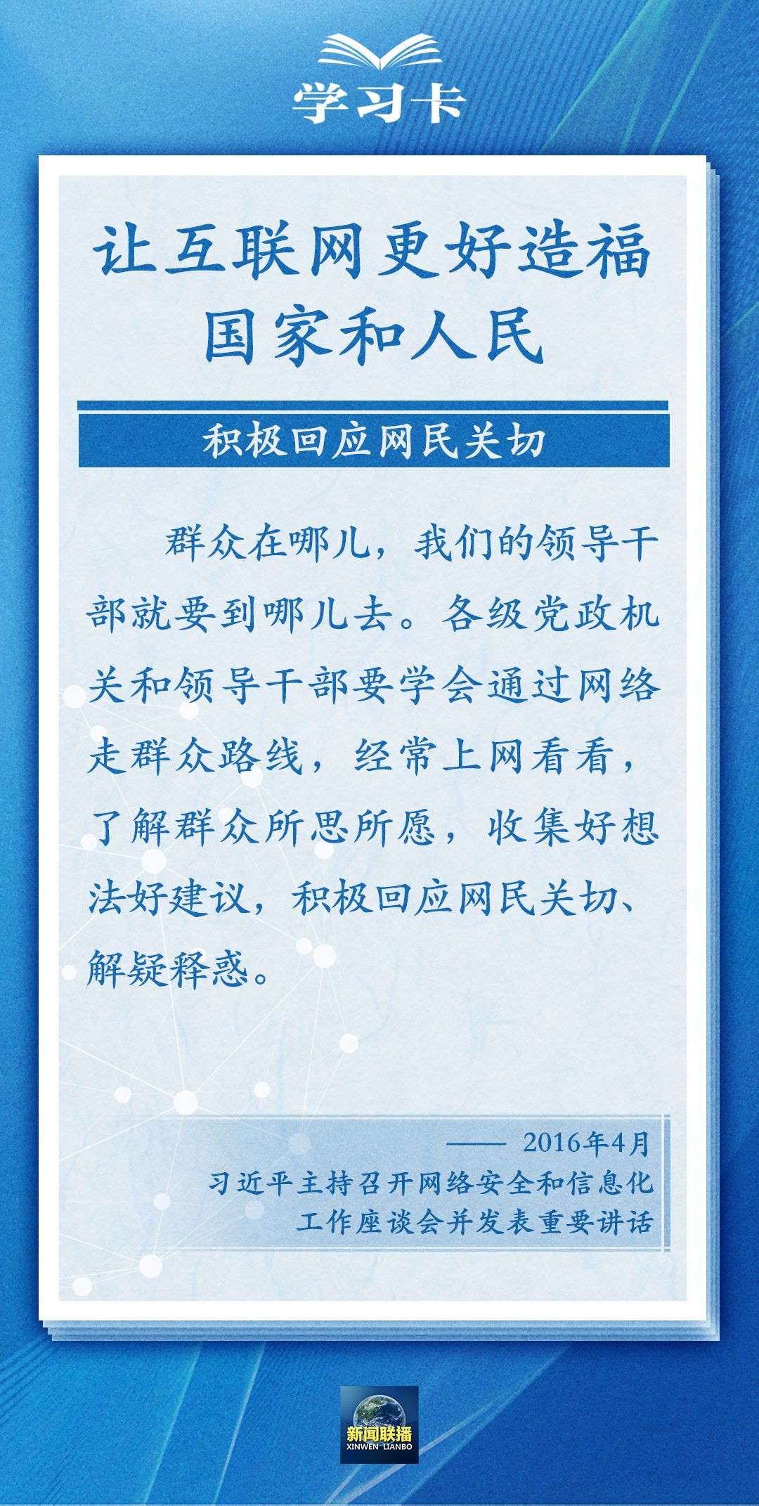 總書記多次指出,網信事業(yè)發(fā)展必須以人民為中心,適應人民期待和需求。如何讓互聯(lián)網更好造福人民?一起學習↓