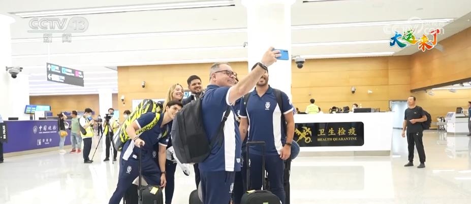 當(dāng)天抵達(dá)的巴西代表團(tuán)在機(jī)場(chǎng)完成海關(guān)衛(wèi)生檢疫及通關(guān)手續(xù)后,代表團(tuán)成員表示,很高興來到成都,希望打好比賽的同時(shí)也希望好好感受成都的美好生活。