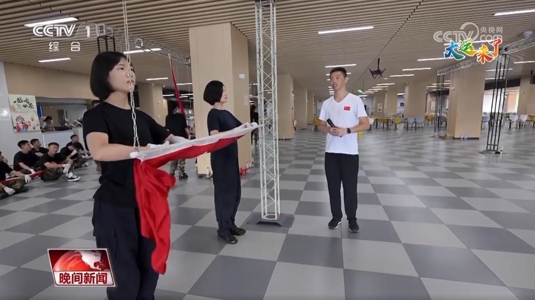 大運會頒獎儀式升旗手總教官 盛東龍:目的就是希望通過這么一場神圣而莊嚴的升旗儀式來感染他們,來激發(fā)和增強他們的愛國情懷,包括他們的使命擔當。