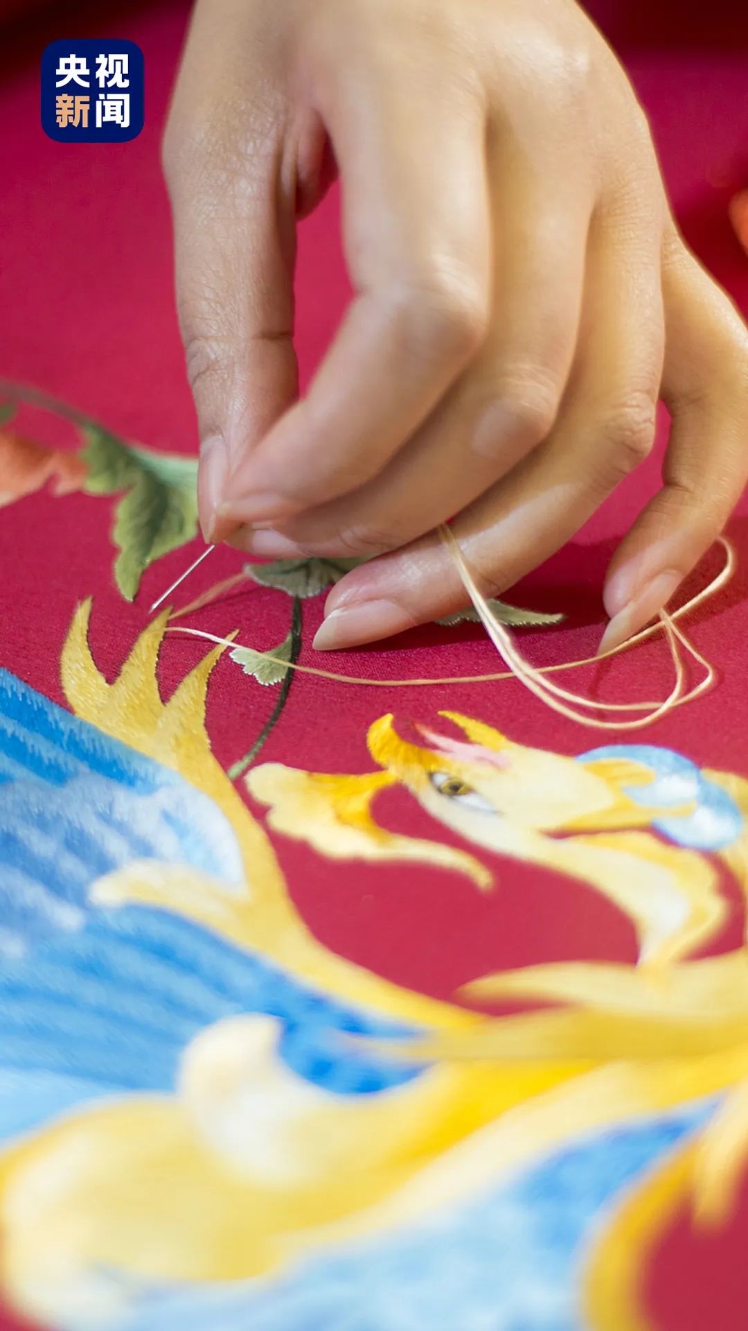 △蜀繡。蜀繡以其明麗清秀的色彩和精湛細(xì)膩的針法形成了獨特韻味。