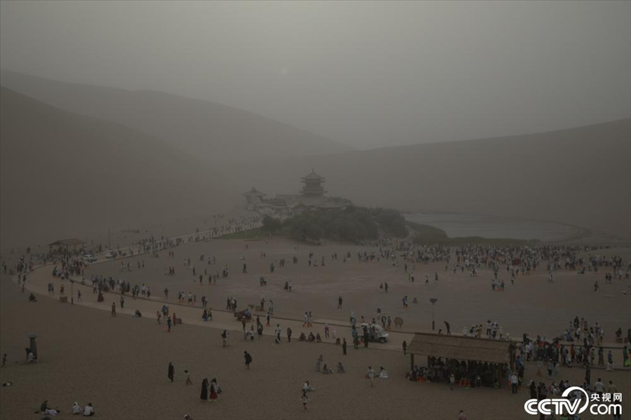 甘肅敦煌:鳴沙山月牙泉景區(qū)黃沙漫天。
