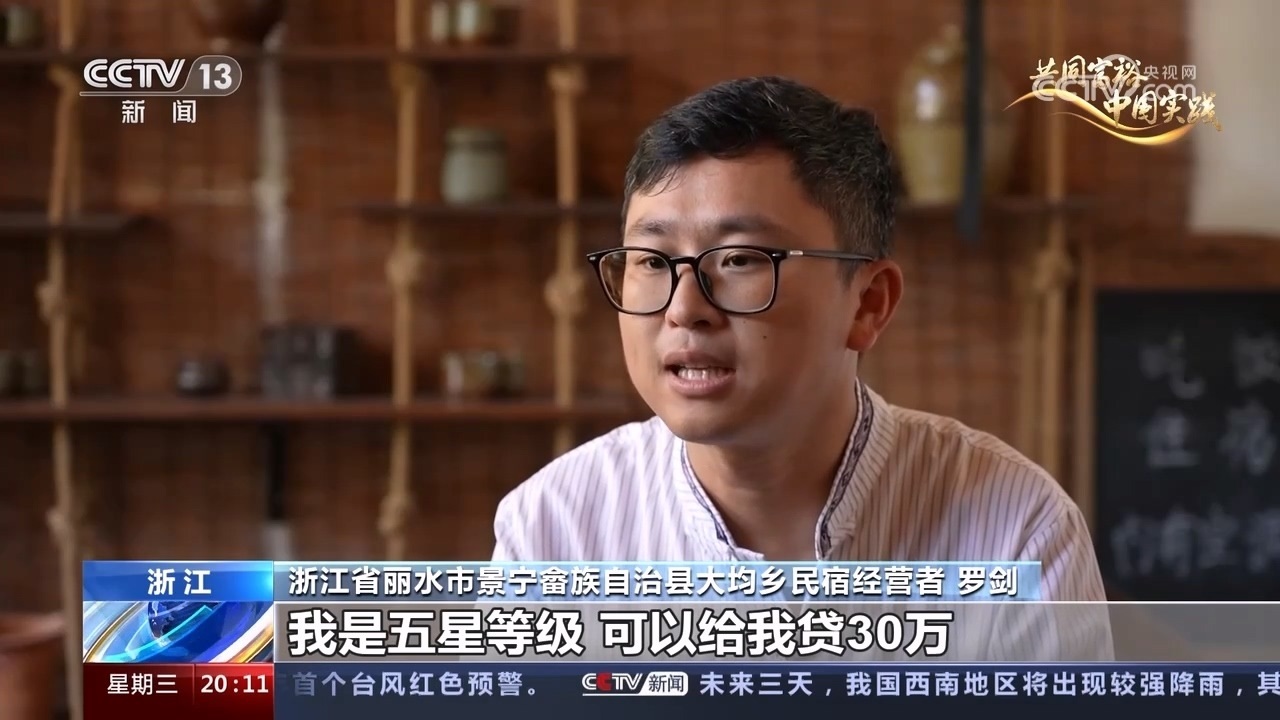 浙江省麗水市景寧畬族自治縣大均鄉(xiāng)民宿經(jīng)營(yíng)者 羅劍:以我的個(gè)人(生態(tài)信用)等級(jí),我是五星等級(jí),可以給我貸30萬,而且我了解了年利率,它是3.85%,算起來是最低的,所以說我就去貸了。