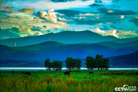 云南麗江,黃昏時(shí)分,拉市海風(fēng)光旖旎。