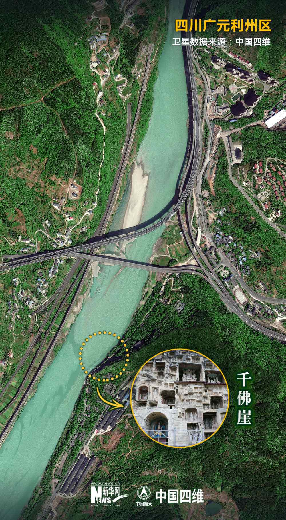 值得關(guān)注的是,就在千佛崖的河對岸,幾條現(xiàn)代化交通網(wǎng)錯(cuò)落有致地交織在一起。今日的廣元是名副其實(shí)的“交通博物館”。老川陜路、京昆高速、寶成鐵路、西成高鐵、嘉陵江航道在這里交織“奔騰”。橫渡嘉陵江,仿佛穿越古今。