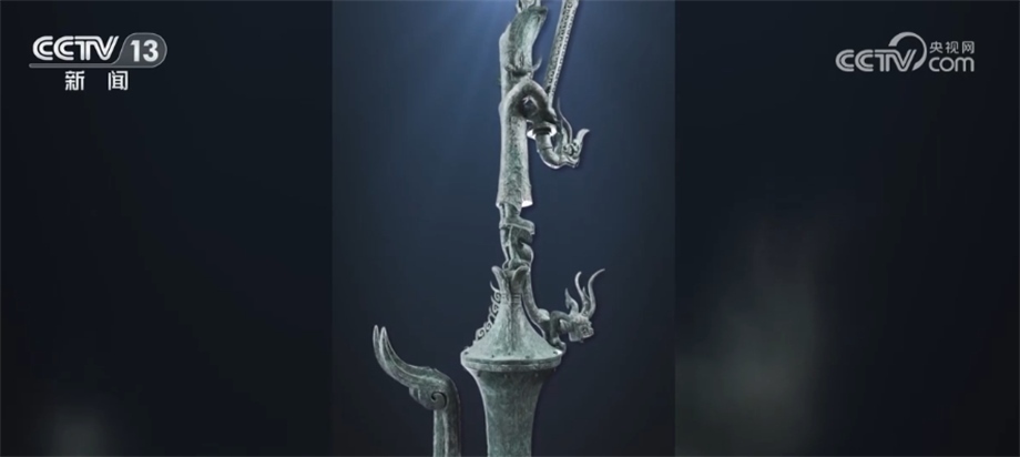 北京大學(xué)考古文博學(xué)院副教授 趙昊:為什么我們不直接把這件器蓋放在這個尊之上,或者包括那個持龍人像放在器蓋之上,這涉及到一個文物安全的問題。因為相對來說這些器物本體已經(jīng)有一些變形,第二就是它長期埋在地下,本體已經(jīng)變得比較疏松了,如果我們將它原來整體復(fù)原蓋在一起,重量會很大,可能對于下面的支撐壓迫比較重。
