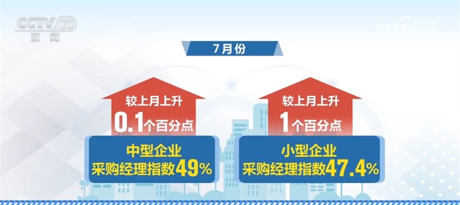 從企業(yè)規(guī)模來看,7月份大型企業(yè)采購經(jīng)理指數(shù)繼續(xù)位于擴張區(qū)間,對制造業(yè)總體支撐作用顯著。中型企業(yè)采購經(jīng)理指數(shù)結束連續(xù)四個月的下降勢頭,較上月小幅回升。小型企業(yè)采購經(jīng)理指數(shù)較上月上升1個百分點,結束了連續(xù)四個月的下降勢頭。結合來看,以民營經(jīng)濟為主的中小企業(yè)景氣水平有所改善。
