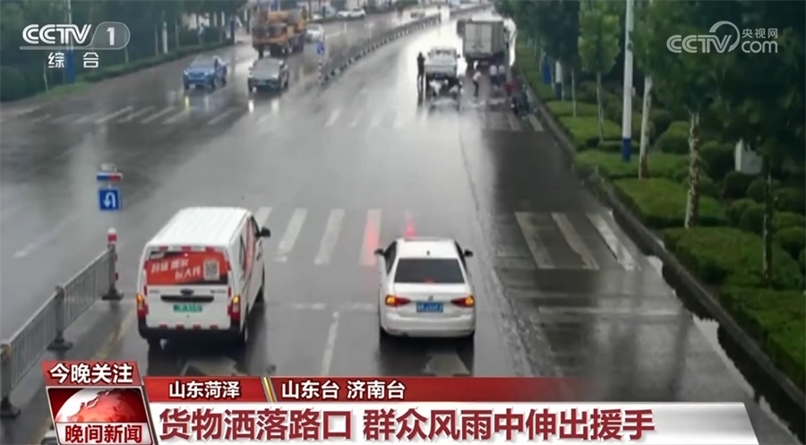 近日,山東菏澤定陶區(qū)出現(xiàn)持續(xù)強(qiáng)降雨過(guò)程,因雨天路滑,一輛載滿貨物的車(chē)輛轉(zhuǎn)彎時(shí),車(chē)上裝載的一噸多礦泉水灑落一地,風(fēng)大雨急,貨車(chē)司機(jī)束手無(wú)策。這時(shí),又一輛貨車(chē)停在了車(chē)前,從車(chē)上下來(lái)三位女士幫助貨車(chē)司機(jī)搬運(yùn)貨物,過(guò)往群眾也紛紛冒雨參與其中。在大家共同努力下,灑落的貨物十分鐘就被整理干凈。