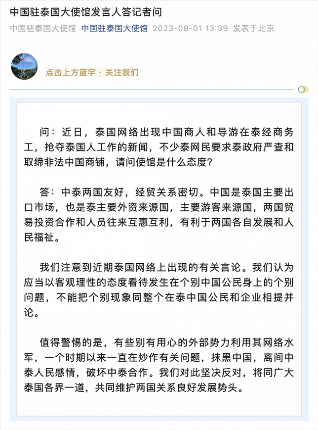 ·中國商人和導游在泰搶奪泰國人工作?泰網(wǎng)民要求嚴查?中使館回應。