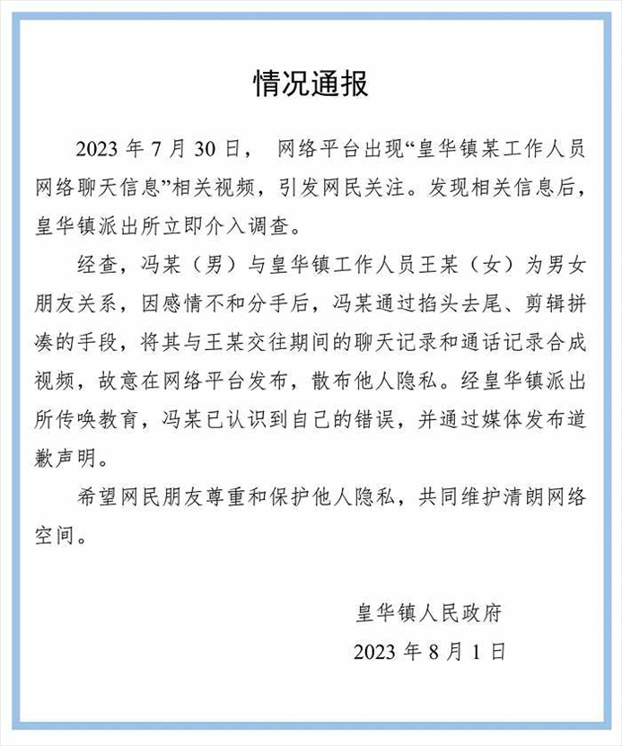 ·四川一公職人員被曝涉不雅聊天,官方通報:視頻系男子分手后剪輯合成。