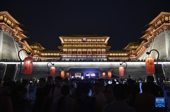 夏夜時分,河南省洛陽市隋唐洛陽城國家遺址公園應(yīng)天門遺址博物館燈火輝煌,熱鬧非凡,滿目的人間煙火再現(xiàn)千年古都繁華盛景。