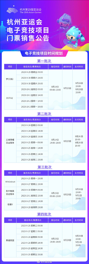 ·杭州亞運會電子競技項目門票14日啟動銷售。
