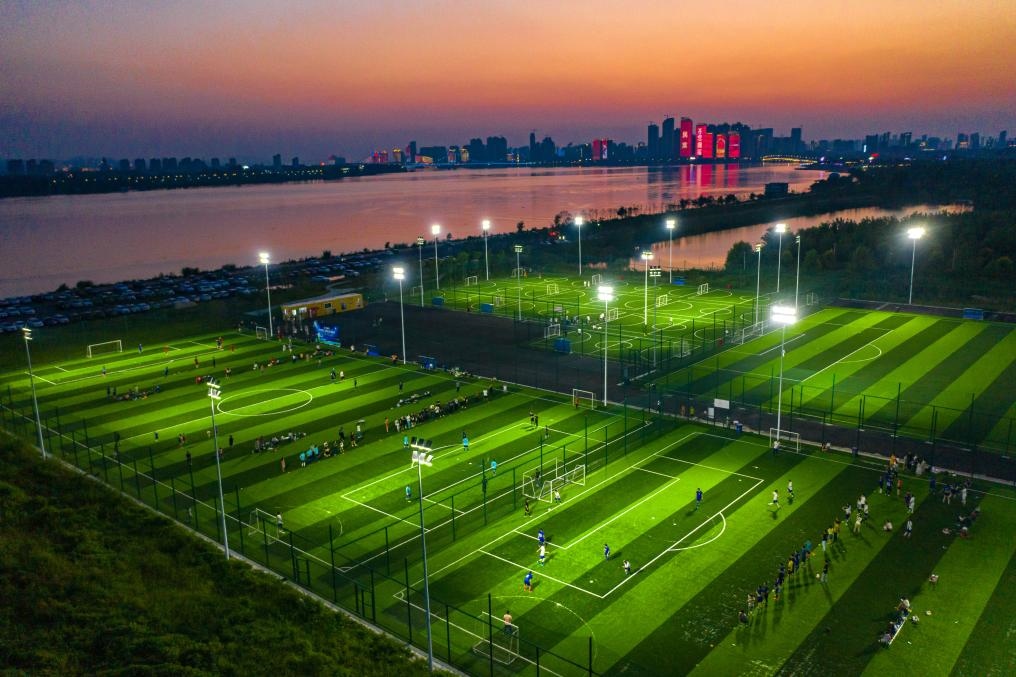 魚(yú)梁洲配置了運(yùn)動(dòng)場(chǎng)所供市民健身鍛煉。(楊東 攝)