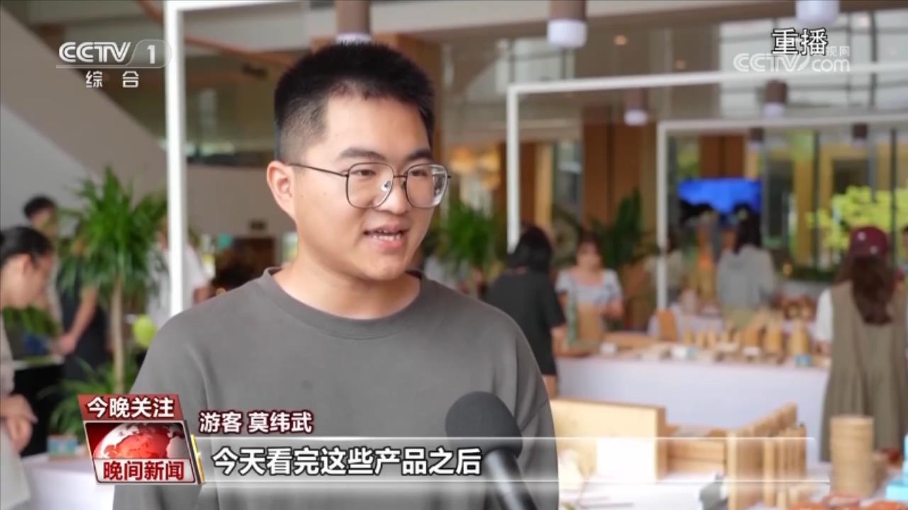 游客 莫緯武:今天看完這些產(chǎn)品之后,我就有點(diǎn)驚訝,因?yàn)橛泻芏嗌钌嫌玫降臇|西都可以用竹制品來(lái)代替。?